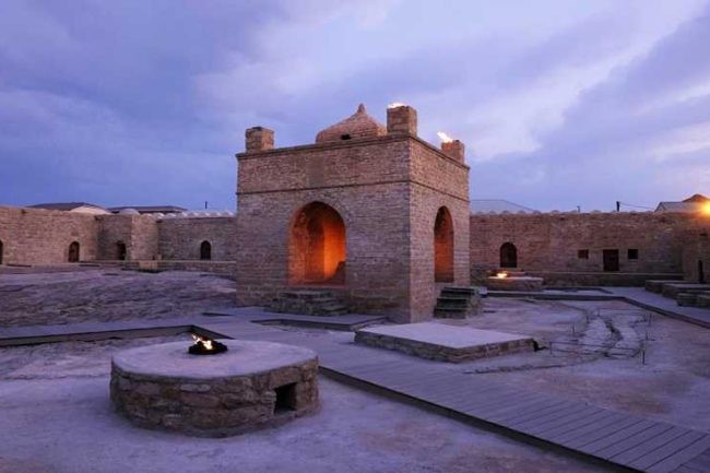 "Атешгях"— уникальный музей под открытым небом, который находится на Апшеронском полуострове, недалеко от Баку. Территория храма известна уникальным природным феноменом, как горящие выходы естественного газа (газ, вырываясь наружу, соприкасается с кислородом и загорается). Храм в его современном виде был построен в XVII—XVIII веках, однако история этого места уходит далеко в глубь веков - приблизительно с начала нашей эры на этой территории располагалось святилище зороастрийцев - огнепоклонников.